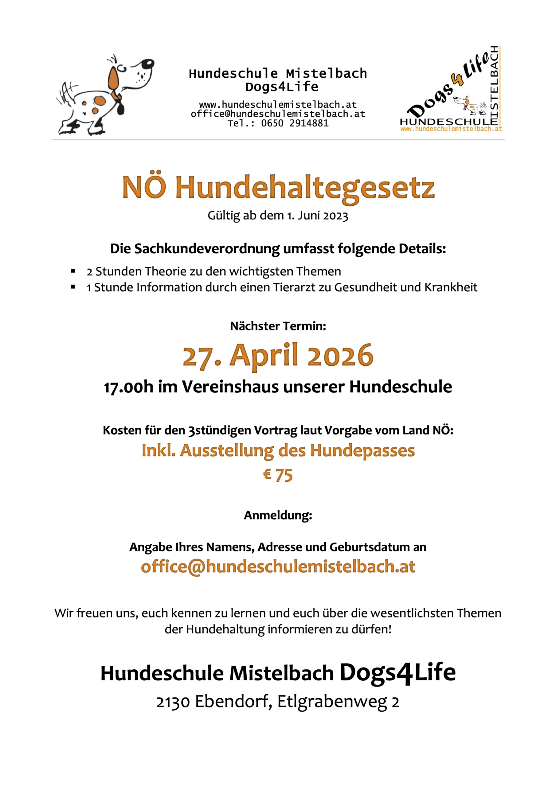 NÖ-Hundepass 75 € (Dieser Betrag ist von der NÖ-Landesregierung mindestens vorgegeben)