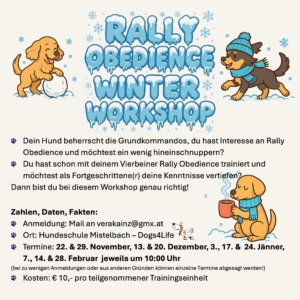 Über den Winter bieten wir Workshops und einen Winter-Welpenkurs an, das Angebot wird laufend erweitert. Du findest alle Angebote unter Winterworkshops.